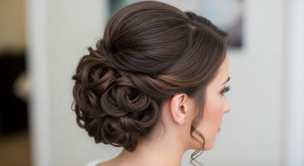 If you have naturally curly or wavy hair, don’t straighten it before your updo. Style it on second-or-third-day hair when the curls are more defined. When you put it up, the curls will create natural volume and texture that a straight-haired updo can’t replicate, making the entire style look softer and more organic.