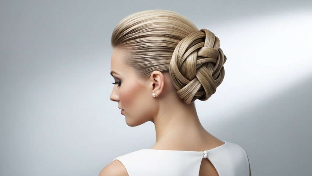 The Sleek High Bun: A smooth, high-positioned bun that commands attention. It elongates the neck and pairs perfectly with dramatic earrings and a simple, modern gown.