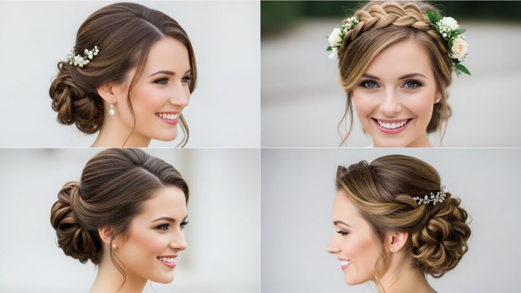 Accessorize Wisely: A simple updo can be transformed with the right piece. Consider a delicate comb, a sparkling pin, fresh flowers, or a classic veil. Less is often more—let one accessory shine.