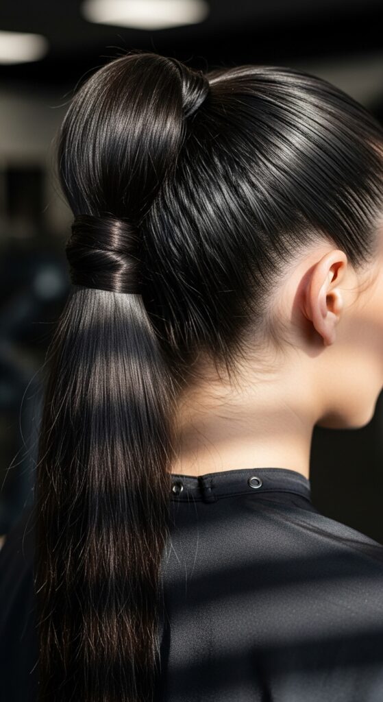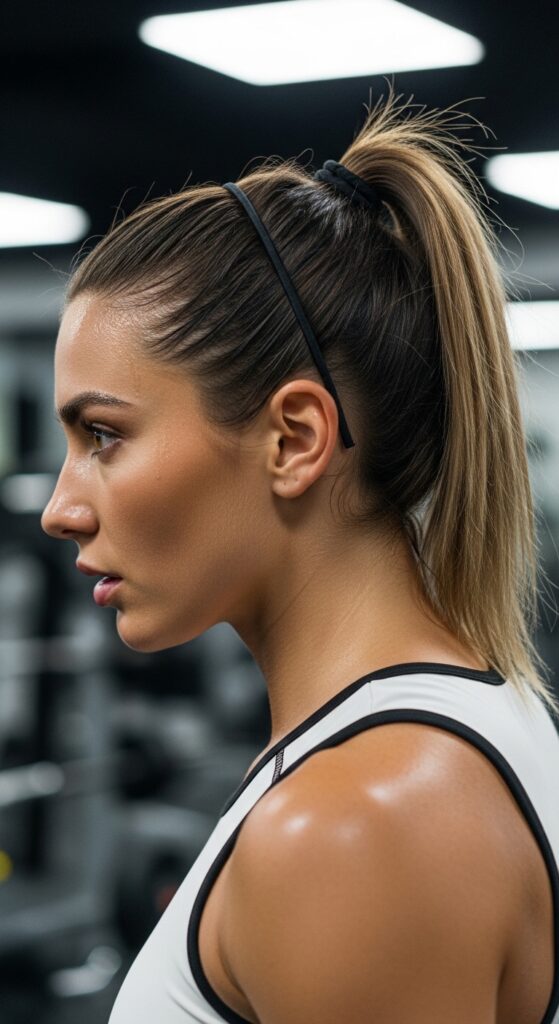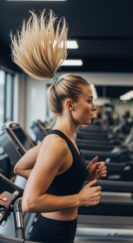 Think of a ponytail so tight it feels bouncy. Start by smoothing hair with a bristle brush, pull it into a high ponytail at the crown, and use two elastics—one near the base, one a few inches down. This creates a “ball” effect that stays secure through fast movements.