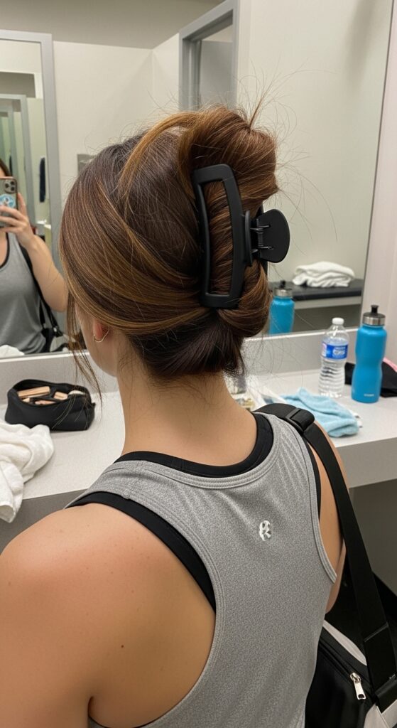 For extra hold, spray dry shampoo on your roots before pulling it up. It grips better and looks fresher longer. 2026 hairstyles love this trick for its clean, “put-together” vibe that’s still gym-ready.