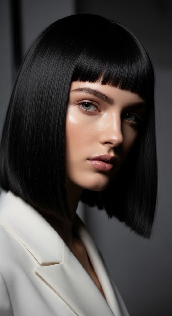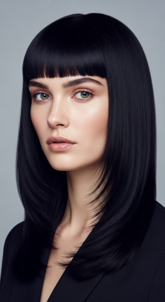 To style it, use a round brush and a low heat setting. The key is a slight bend at the ends—not a sharp curl. This look screams 2025 hairstyles, but it’s also timeless. Just ask your stylist for a blunt cut with very subtle face-framing pieces.