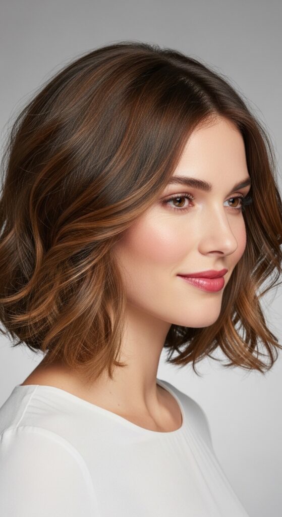 The asymmetrical lob is a game-changer for fine hair. The uneven lengths create the illusion of movement and thickness. Because one side is longer, your hair looks fuller without needing extra volume.