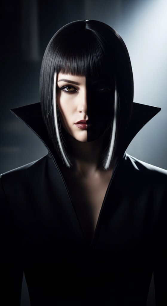 This is a bold look, but it’s also incredibly flattering if you want to embrace a bit of romantic goth hairstyles energy.