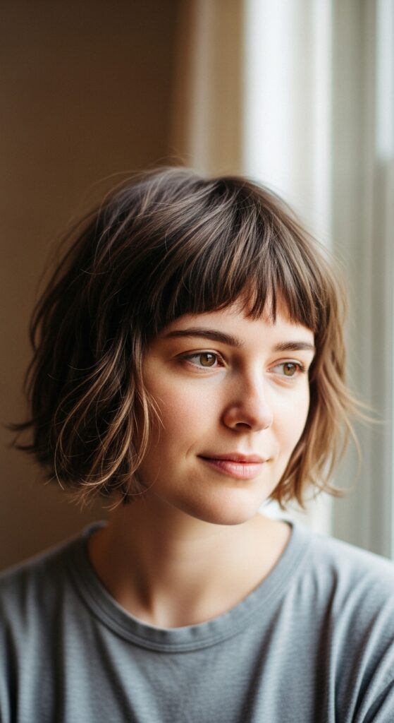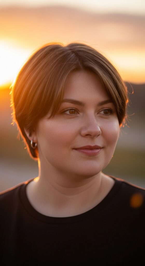 This is the cool-girl pixie that feels like you didn’t try at all. The wispy ends break up the solid shape of a round face, making everything look softer and more relaxed. It’s perfect if you’re into that 2026 hairstyles trend of undone texture.