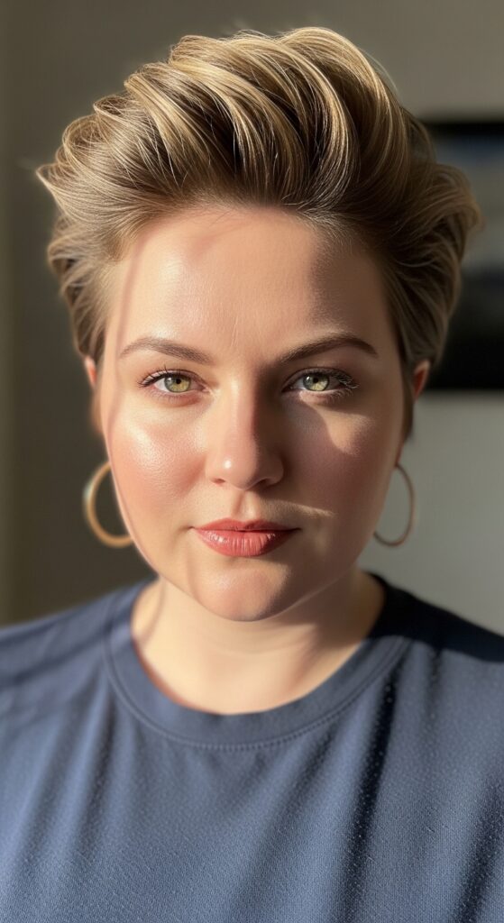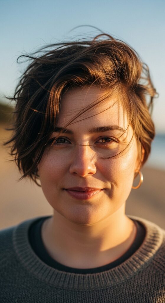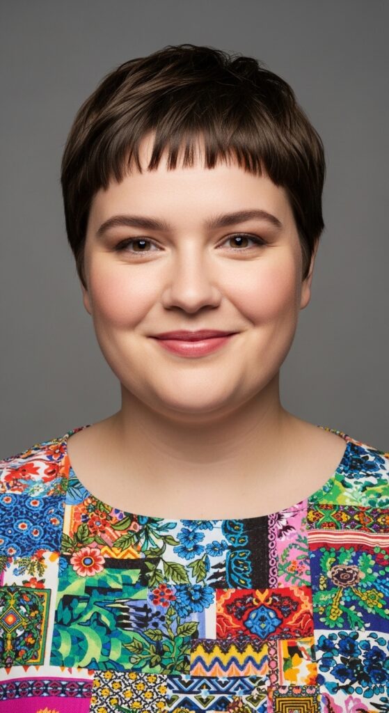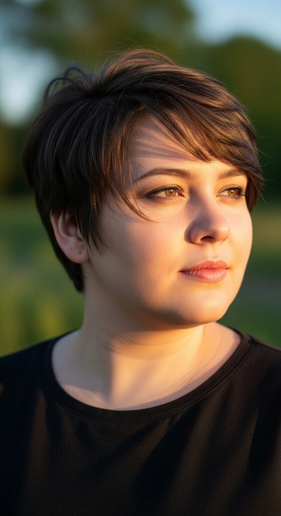 Side bangs are a round face’s best friend. When paired with a longer pixie, they create a diagonal line that visually narrows your face. This cut is super versatile—you can tuck it behind your ear for a cleaner look or leave it tousled for weekend vibes.