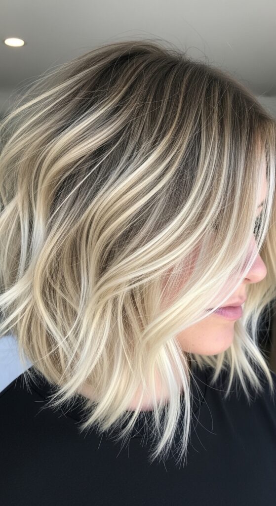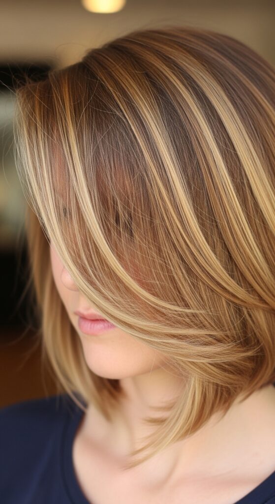 These highlights brighten your features without the upkeep of a full head of highlights. It’s a smart, low-commitment way to add dimension to your timeless bob.