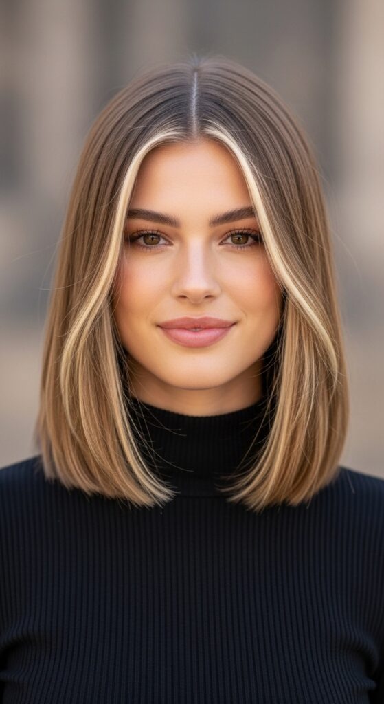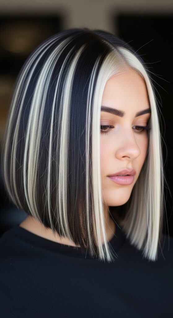 Money pieces are those bold, contrasting highlights that frame your face. Paired with a severe blunt bob, they create a high-fashion, graphic look.