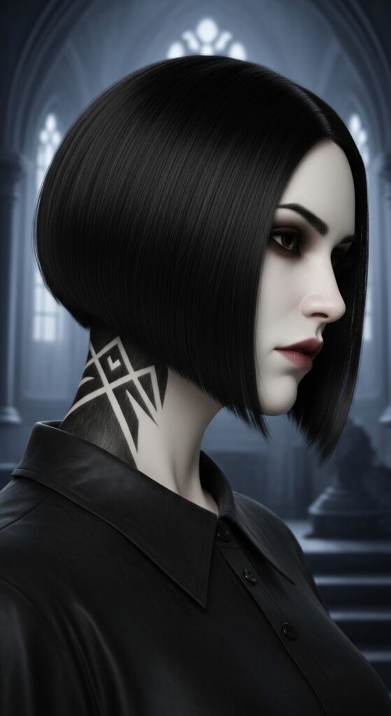 This is the blunt bob’s edgier sister. The modern vampire haircut is sleek, severe, and often features an unexpected element like a hidden undercut, extreme asymmetry, or razor-sharp bangs.