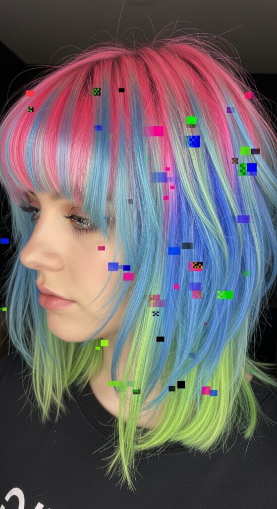 This cut is genius for adding movement and framing your face without much effort. It’s a cornerstone of that glitchy glam hair aesthetic—polished but with an interesting twist. It grows out beautifully, too.