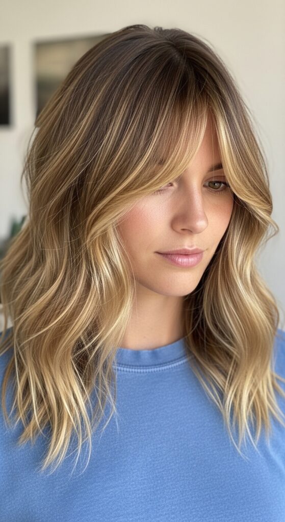This might be the most requested cut in salons right now. The lob (long bob) is universally flattering. Add in face-framing curtain bangs, and you’ve got a recipe for a soft, youthful look.