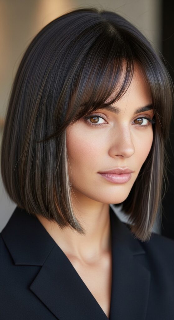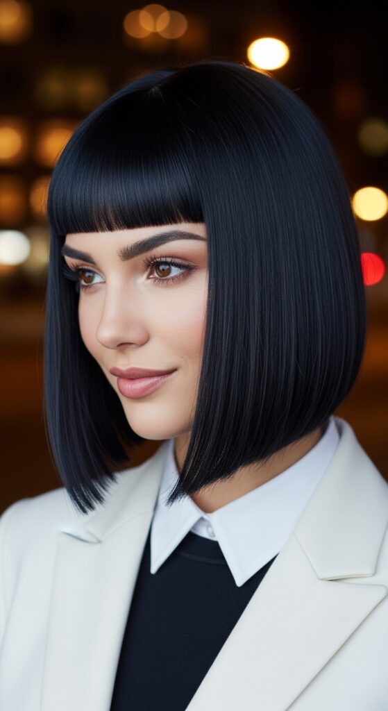This cut looks pristine when straightened but also holds a curl beautifully. It’s a red-carpet favorite for its clean, architectural lines.