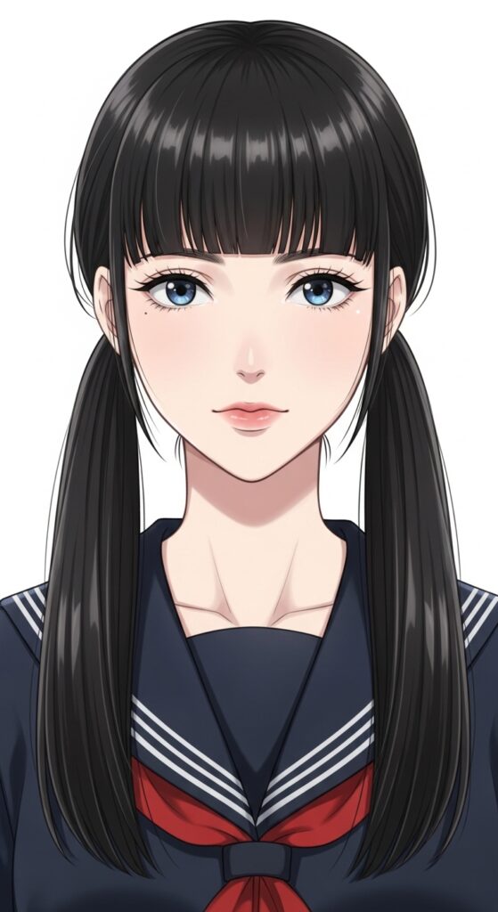 If you have a hime cut, the style is built in. Simply gather the long back sections into two low ponytails. Let the blunt bangs and side pieces frame your face perfectly.