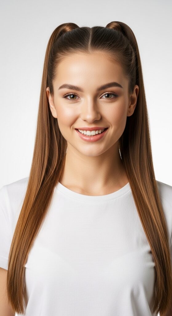 This is where it all starts. Two high ponytails, symmetrical and smooth. It’s the ultimate clean-girl take on a youthful style. The key is making it look intentional, not like you just rolled out of bed.