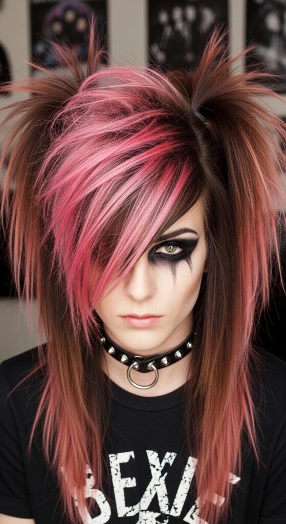 Bring back the glory days of the emo and scene era with this look. It’s all about volume, side-swept bangs, and a whole lot of attitude. A can of hairspray is your best friend here.
