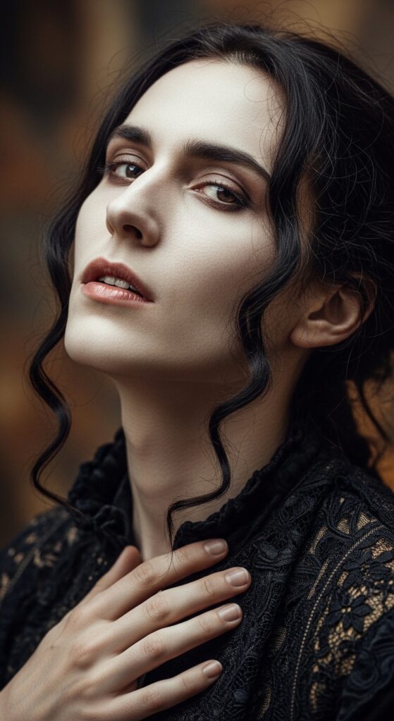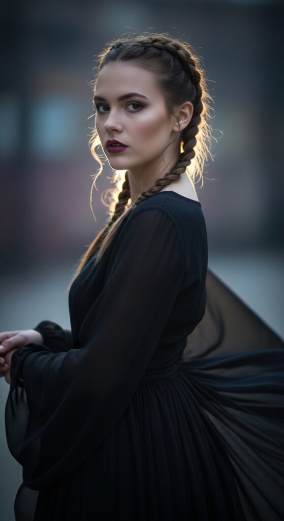 This “romantic goth hairstyles” trend is beautiful on dry hair. Create two low braids (any type—even simple three-strand). Gently pull them apart to make them look fuller.