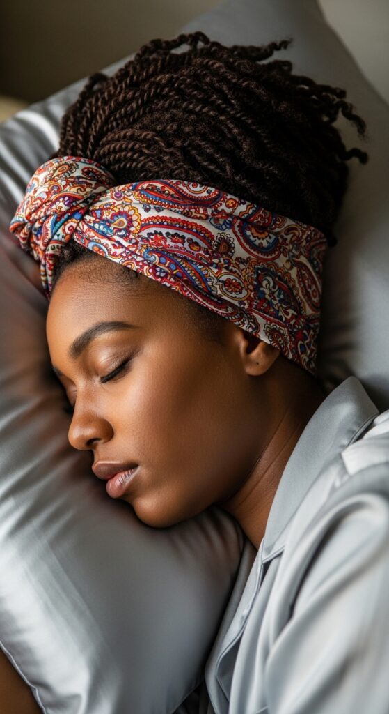 Then, wrap a silk scarf around your head to secure them. In the morning, you’ll have waves and deeply moisturized hair. It’s the ultimate multi-tasker.