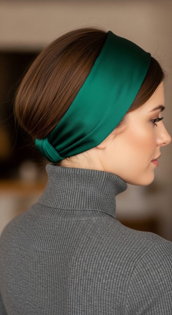 Tuck all your ends under the headband in the back. It creates a smooth, 60s-inspired bob look and secures all your ends safely under the soft fabric.