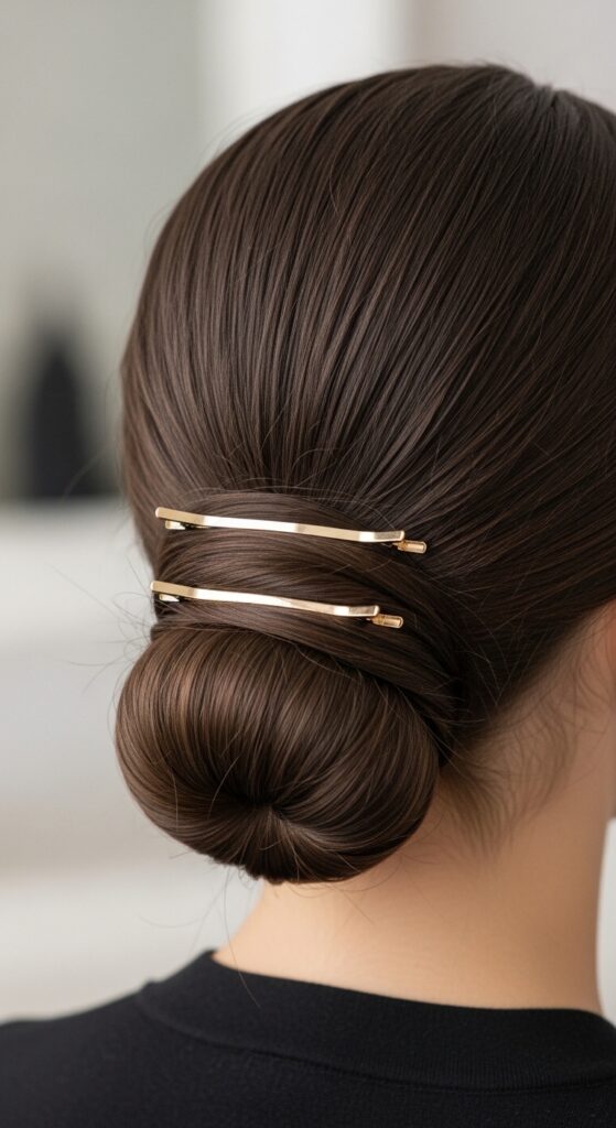 Then, add two simple, elegant jaw clips at the back for that chic, “quiet luxury bob” illusion. It keeps your ends tucked away and looks incredibly put-together for dry, unwashed hair days.
