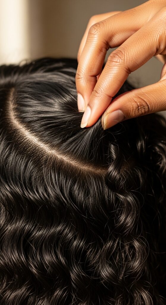 Let your hair dry completely. When you unwrap, you’ll have gentle, heat-free waves. It’s a fun, zero-cost way to style while avoiding more dryness.