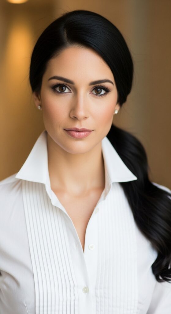 Brush your hair back gently, but don’t pull it tight. Secure with a silk scrunchie. The key is to leave a few face-framing pieces loose and smooth any flyaways with a bit of pomade. It’s polished but soft.