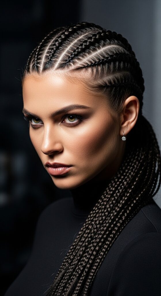 This intricate, protective style is bold, edgy, and keeps thick hair completely controlled. It’s a statement look that’s surprisingly practical.