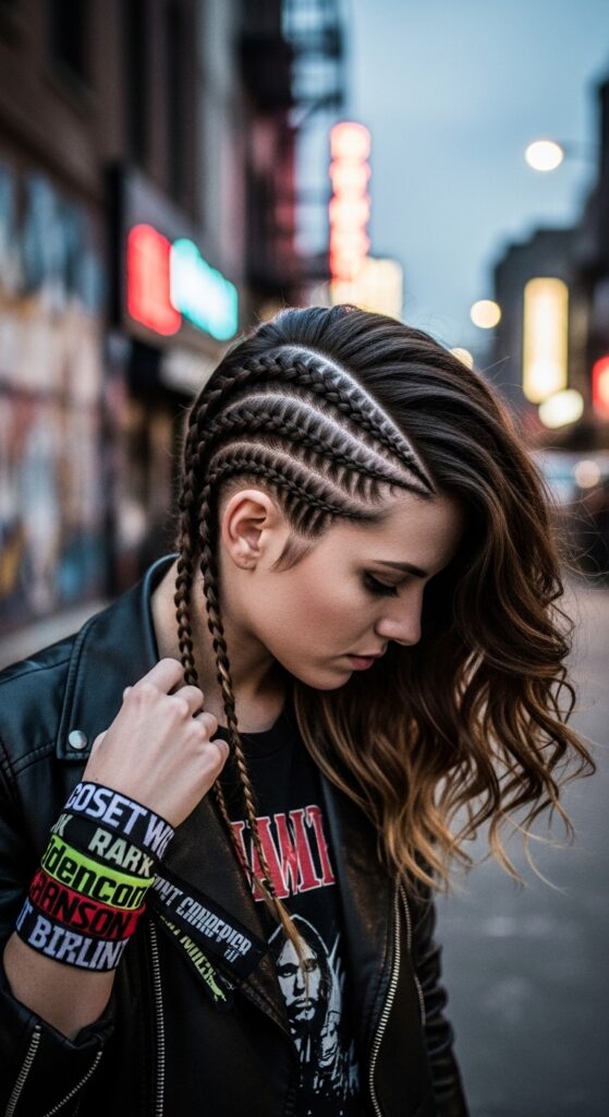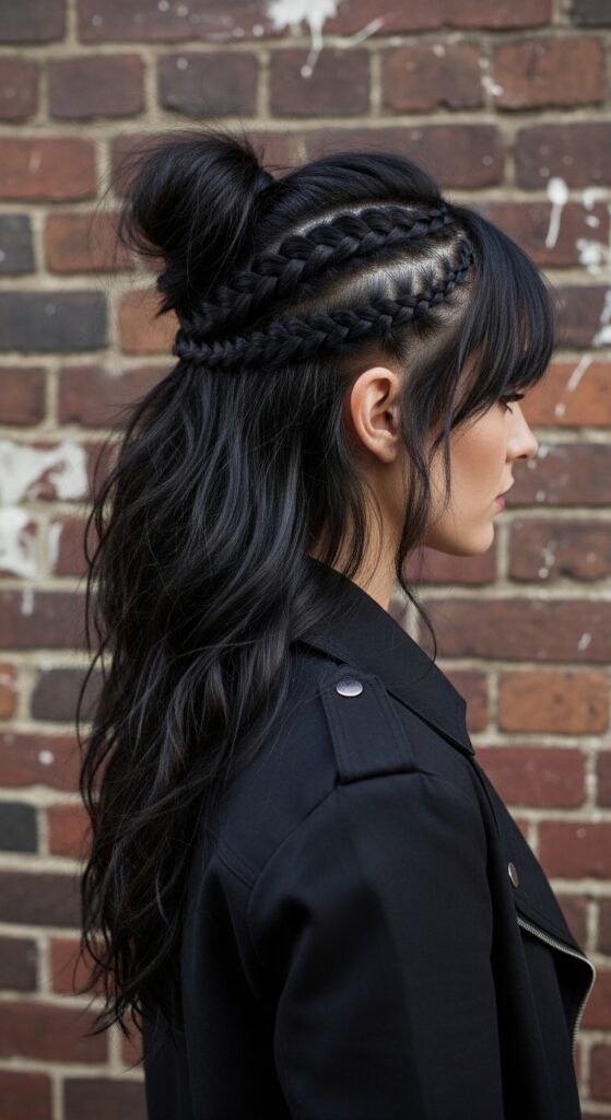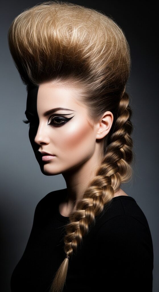 This combines the drama of a modern pompadour with the neatness of a braid. It’s a fantastic way to add height and a touch of glitchy glam hair rebellion.