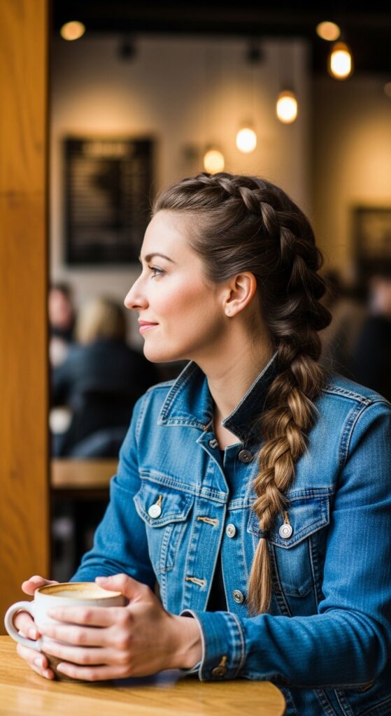 The ultimate easy, chic option. Gather all your hair to one side and create a single, thick Dutch braid over your shoulder.