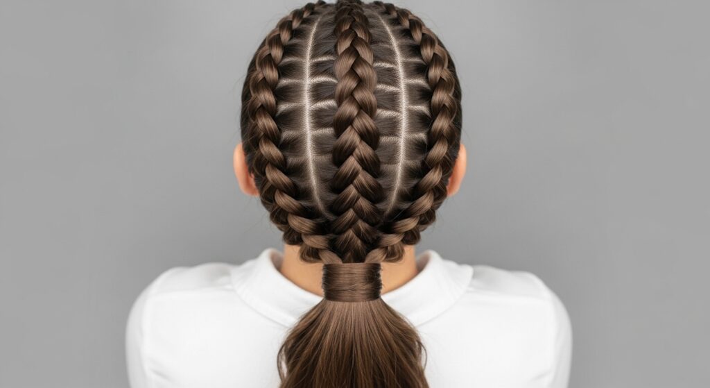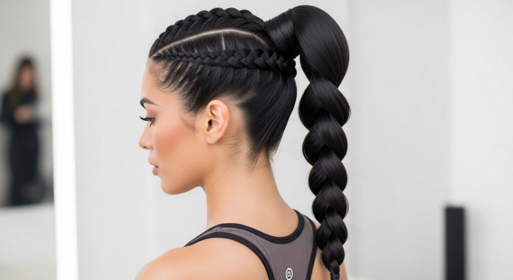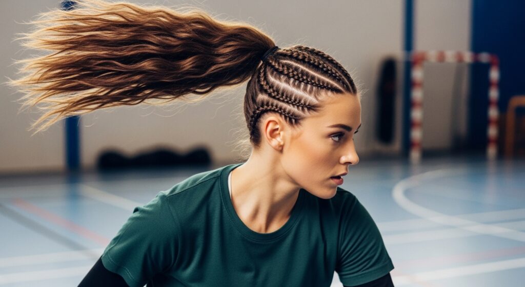 For the bold and fearless athlete, this is your signature look. Create multiple, tight Dutch braids converging from the front and sides of your head into a single, sky-high ponytail at the crown. The effect is a fierce, modern mohawk-inspired silhouette. This style is not just about attitude; it’s incredibly functional for sports like volleyball, basketball, or boxing, where you need every strand locked in place. It’s a powerful look that commands attention and shows off your confident edge.