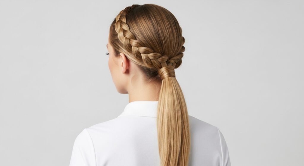 Double down on the braided detail for ultimate security and style. Start with one or two Dutch braids that feed into your ponytail. Once the ponytail is secured, continue the braiding technique down the length of the tail itself. You can opt for a classic three-strand braid, a fishtail, or even continue the Dutch braid pattern. This completely eliminates any loose hair and is perfect for long-haired athletes in sports like swimming (under a cap), rock climbing, or cycling, where even a wisp can be bothersome.