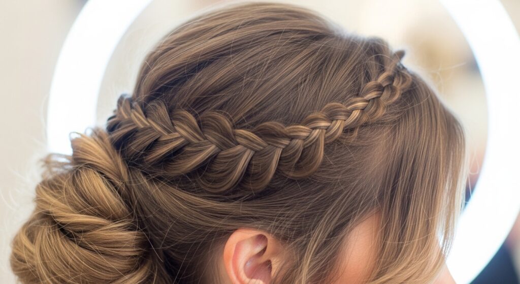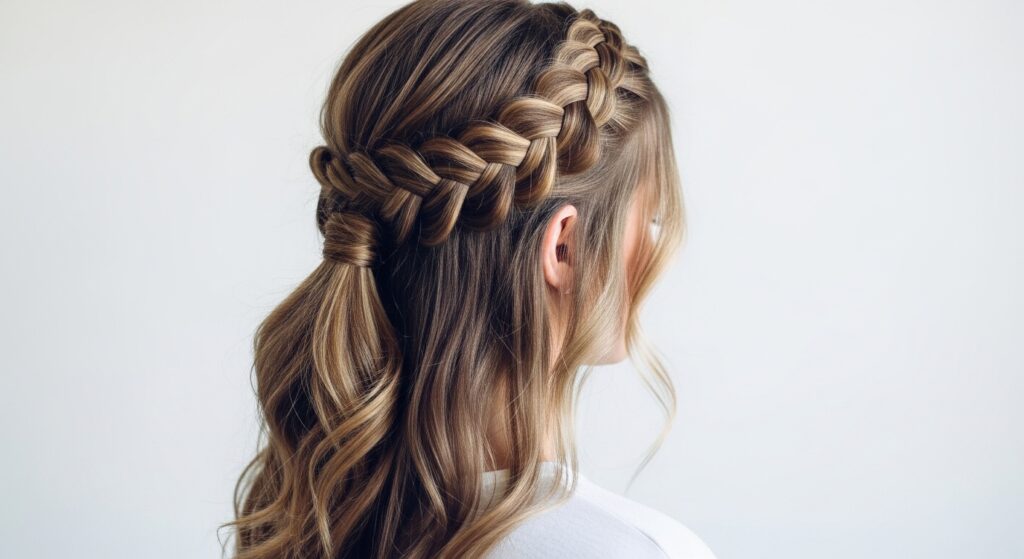 For those who love to show off their hair’s length and texture, this style is a winner. Create a half-up section by Dutch braiding the crown area of your hair from ear to ear, then secure it into a small, perky ponytail at the back of your crown. The rest of your hair flows freely. This offers the best of both worlds: managed front sections and flowing locks. It’s ideal for lower-impact activities like power walking, Pilates, or for simply adding a sporty-chic element to your everyday outfit.