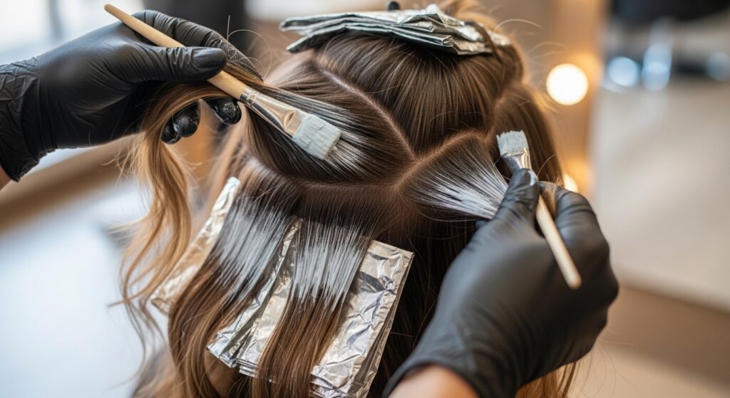 9. Horizontal Section Painting: Work in horizontal (rather than vertical) sections when painting. This allows for more natural, sun-kissed placement that follows the hair’s fall, preventing an artificial “striped” look.
