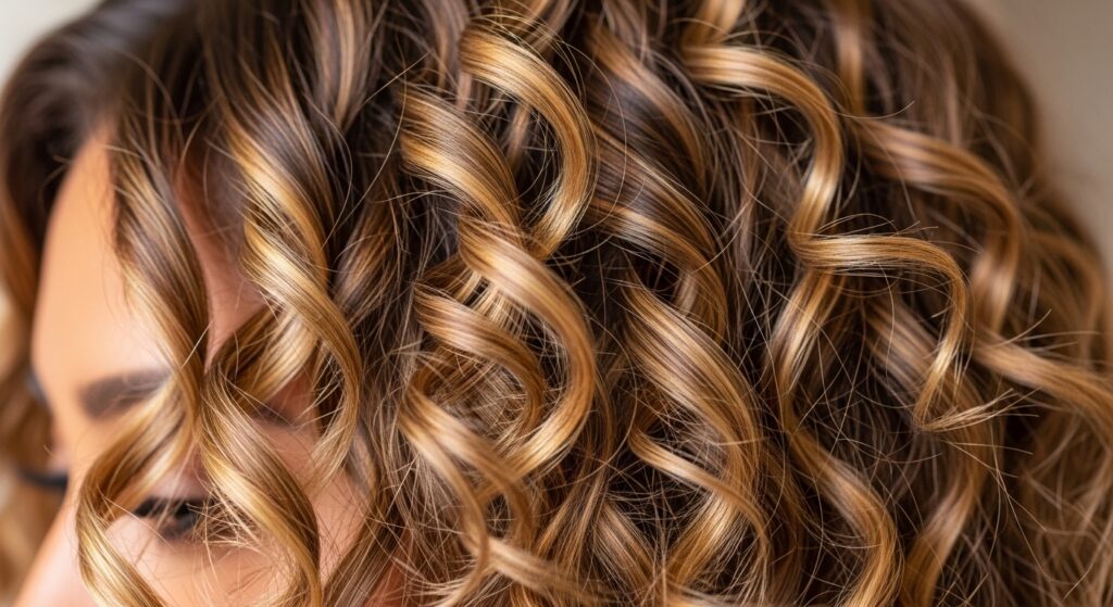 16. Ecaille on Curly Hair: Adjust placement to follow the curl pattern. Highlight the peaks of curls and leave the valleys darker to create incredible, natural dimension that enhances the curl definition.