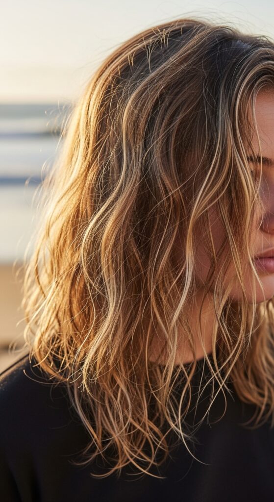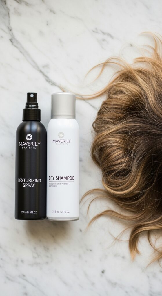 Scrunch in a mousse or salt spray while damp. When dry, use a texturizing spray on the ends and fluff the roots with your fingers. It’s the ultimate “I woke up like this” volume.