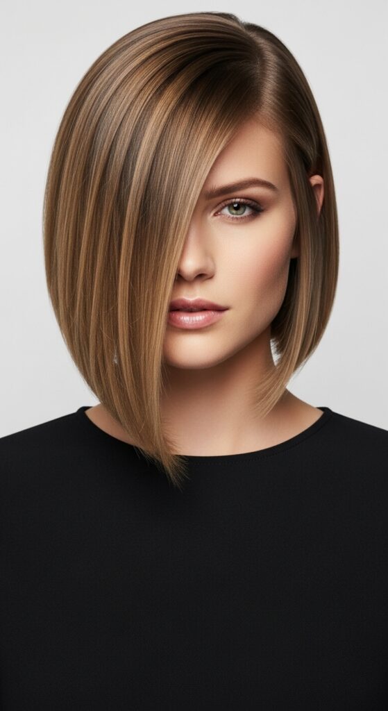 This cut often involves stacking in the back to build volume at the crown. The longer side can be tucked behind the ear or used as a dramatic face-framer.