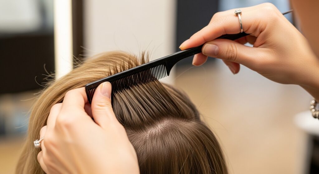 Build a Solid Base: The iconic volume often requires backcombing (teasing) at the crown. Section the hair, tease gently at the roots, and then smooth the top layer over it. This creates the necessary “lift.”