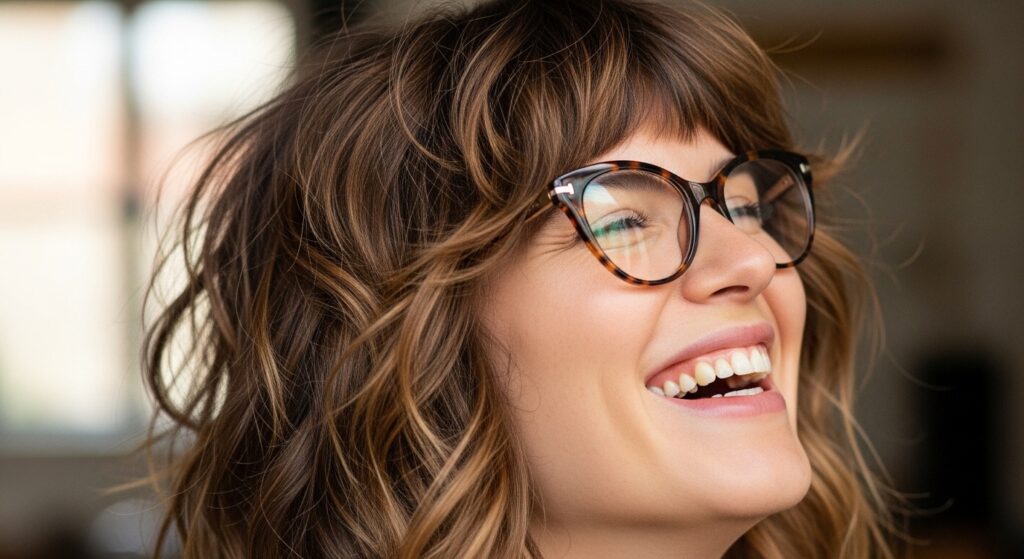 Bonus: Curtain Bangs (Revisited): As mentioned, these longer, parted bangs are a superstar. They frame the eyes and glasses gracefully and can be easily swept to the side if needed.