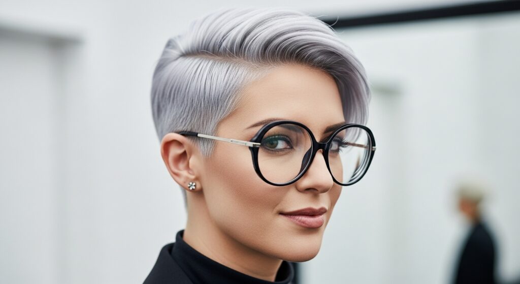 4. The Sleek, Side-Parted Crop: For a more polished look, a close-cropped cut with a deep side part is effortlessly chic and lets your frames be the undeniable star.