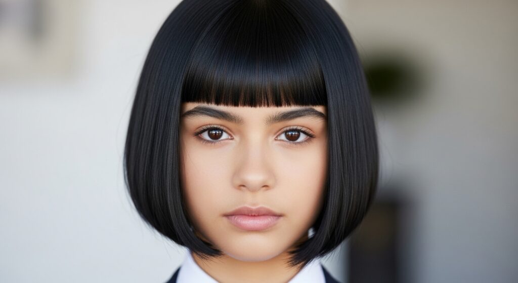 Sharp, sleek, and undeniably chic, the blunt bob is for the teen who prefers a polished yet edgy aesthetic. When paired with straight-across bangs, it creates a graphic, fashion-forward look. This style exudes confidence and clarity. It works best on straight or slightly wavy hair and requires regular trims to keep those lines sharp.