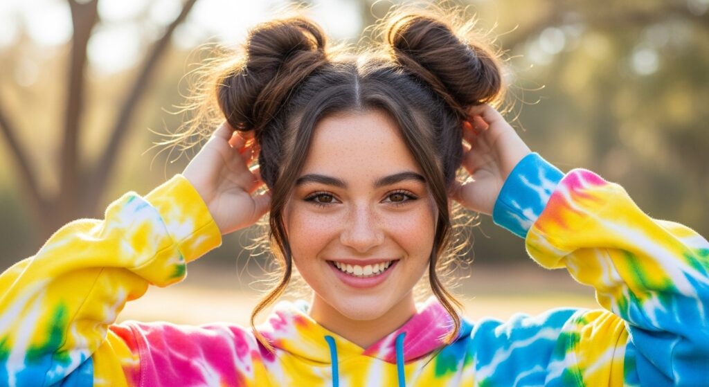 Playful, quirky, and instantly fun, space buns are a go-to style for festivals, parties, or just a day when you’re feeling extra. You can wear them high on your head, at the crown, or even lower for a different vibe. Make them neat and tight for a polished look, or go for messy, textured buns for a more relaxed feel. They’re a fantastic way to keep hair off your face while showing off your playful side.