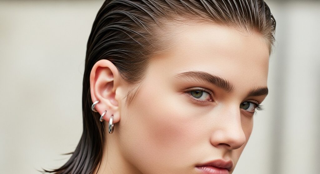 Inspired by runway and red-carpet trends, the slicked-back wet look is the epitome of high-fashion glamour. Using a strong-hold gel or pomade, comb your hair back away from your face for a sleek, glossy finish. It’s a dramatic and powerful style for a special event or when you want to make a statement with pure polish.