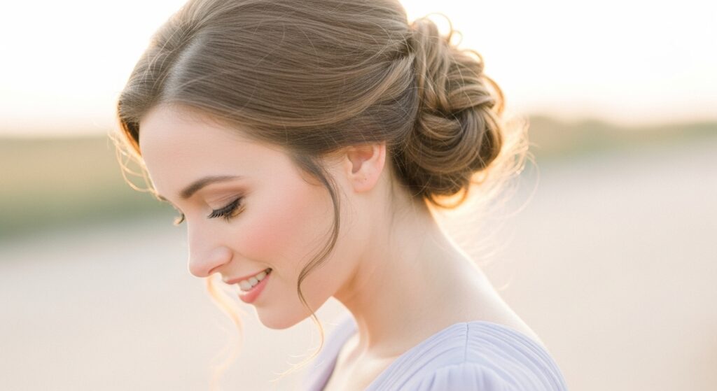 The Tousled Low Bun: The opposite of a tight chignon. This bun is loose, pieces are deliberately pulled out, and the overall effect is as if you effortlessly pinned it up in a garden. It’s soft and incredibly flattering.