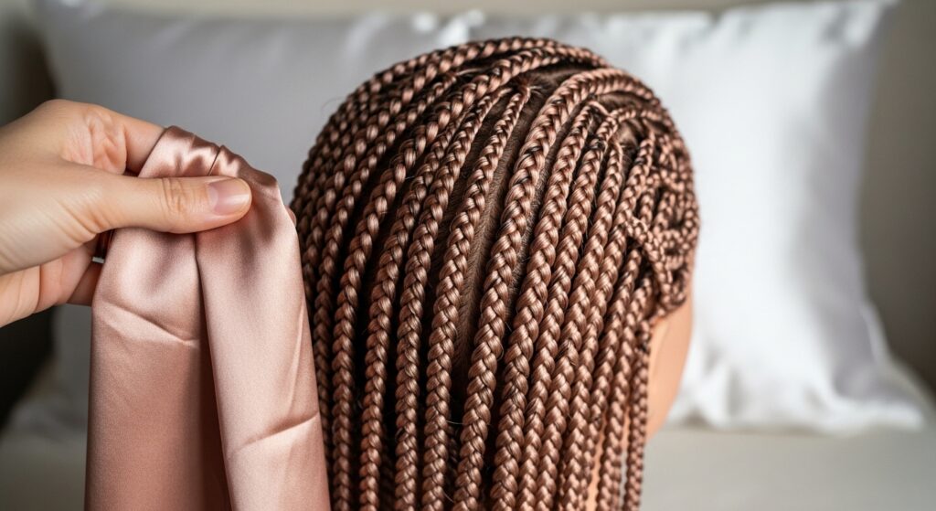 To keep your metallic braids looking their shiniest for weeks, follow a simple care routine. Wrap your hair in a silk or satin scarf at night to minimize friction and preserve the sheen. Use a dry shampoo or diluted braid spray for cleansing your scalp without causing frizz. Avoid heavy oils near the roots, as they can dull the metallic finish and cause buildup.