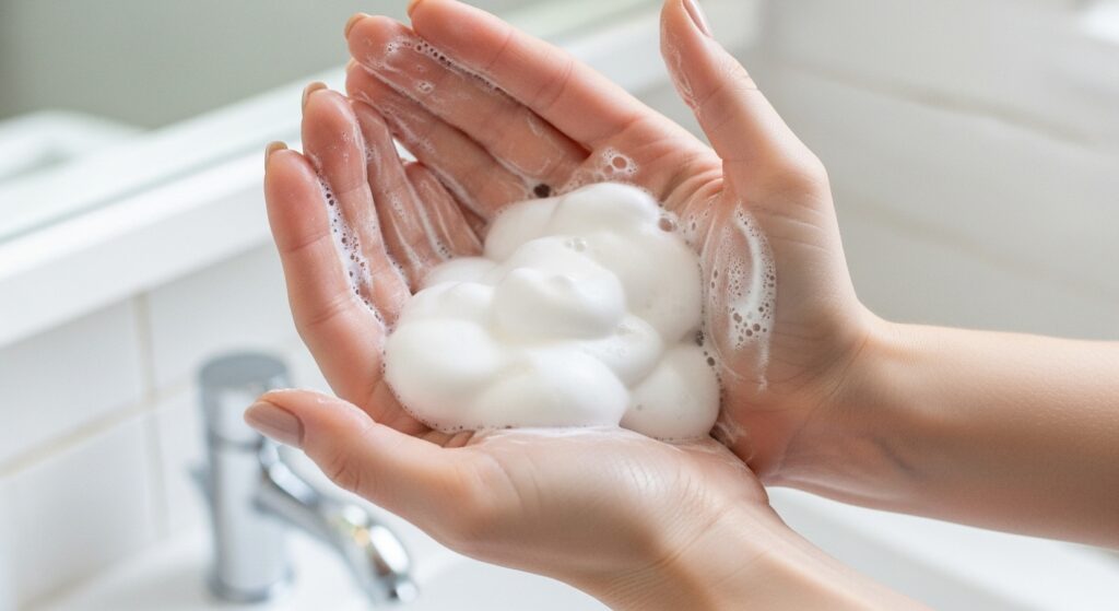 3. Emulsify in Your Hands: Never apply straight from the can to your head. Dispense the foam into your palm, then gently press your hands together to spread it evenly across both palms and fingers. This warms it slightly and prevents concentrated blobs of product.