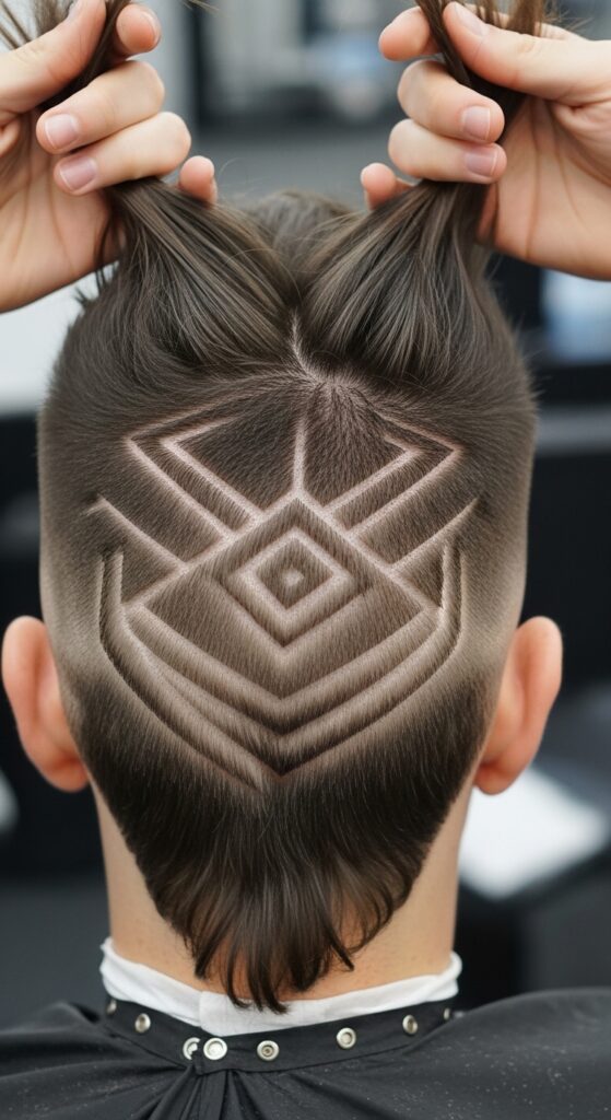 Take the shaved sides idea and elevate it. An undercut design—like lines, patterns, or shapes—adds an artistic, personalized touch that’s hidden when the top hair is down.