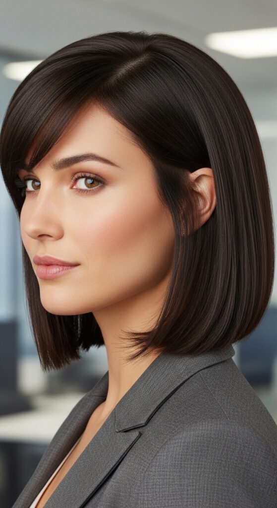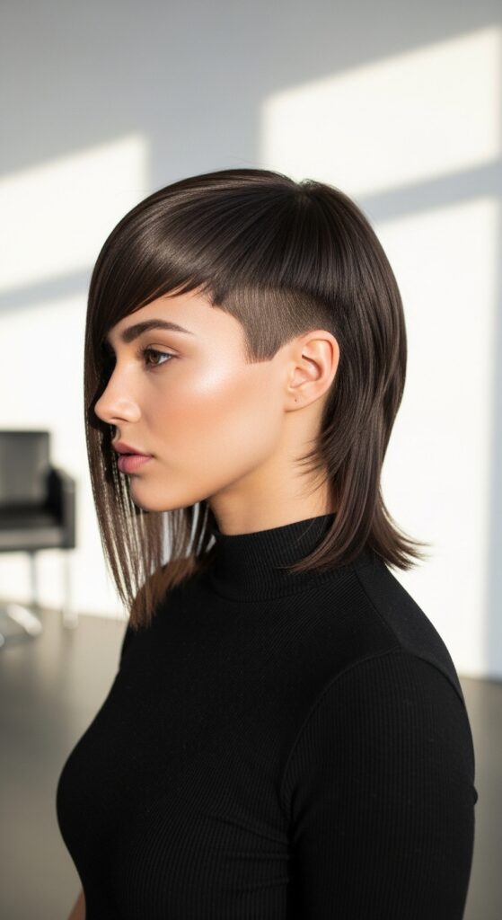 It’s a chic, fashion-forward take that feels more like a quiet luxury bob with a rebellious streak. It works brilliantly on straight hair.