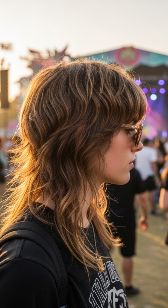 This is the gateway mullet. It takes the shaggy, textured layers of the viral wolf cut and lets the back just… linger a bit longer. The result is effortless volume and movement that doesn’t feel too drastic.