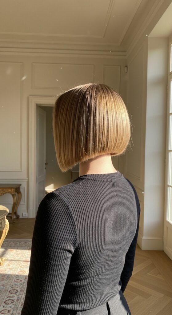 From the back, you get a surprise tail. It’s the ultimate “quiet luxury bob” with a secret.