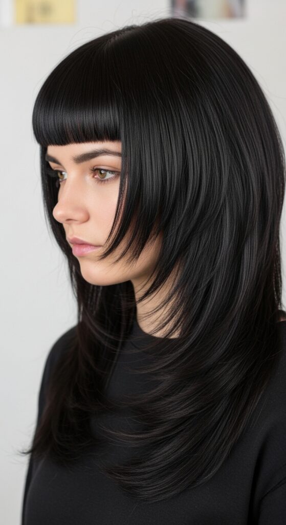 It often features a heavy, blunt fringe or curtain bangs. This is for embracing your inner drama queen with a very cool haircut.