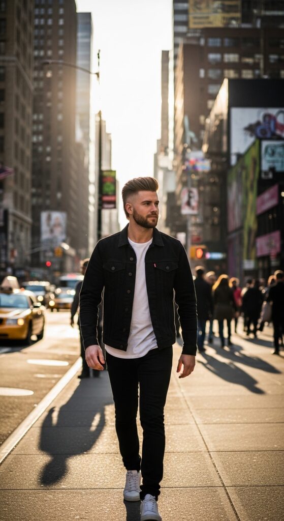 You can play with the contrast—a hard part, a subtle fade, or even a fun design. The key is keeping the top section long enough to style over or slick back.